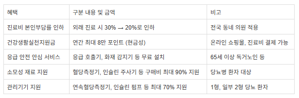 - 1형, 2형(인슐린 투여) 당뇨 환자: 기준금액의 90% 지원