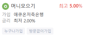 - 에큐온 머니모으기 통장: 최고 금리 5.0%