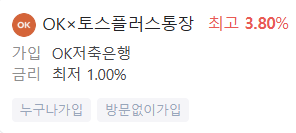 - OKx 토스플러스통장: 최고 금리 3.8%
