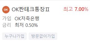 - OK 짠테크 통장 II: 최고 금리 7.0%