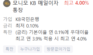 - 모니모 KB 매일이자 통장: 최고금리 4.0%