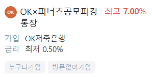 - OKx 피너츠공모파킹통장: 최고 금리 7.0%